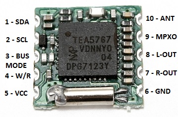 Now talking about the receiver module, TEA5767. TEA5767 is a low-voltage fully integrated intermediate frequency (IF) FM stereo radio module. It includes features like stereo and mono output, station scanning, indicating signal strength, adjustment-free, etc. TEA5767 receiver module operates either in I2C protocol or in 3-wire BUS protocol which can be selected using the BUSMODE pin (pin 3). Here, in this project Arduino FM Receiver BUSMODE is grounded because we had used the I2C protocol.