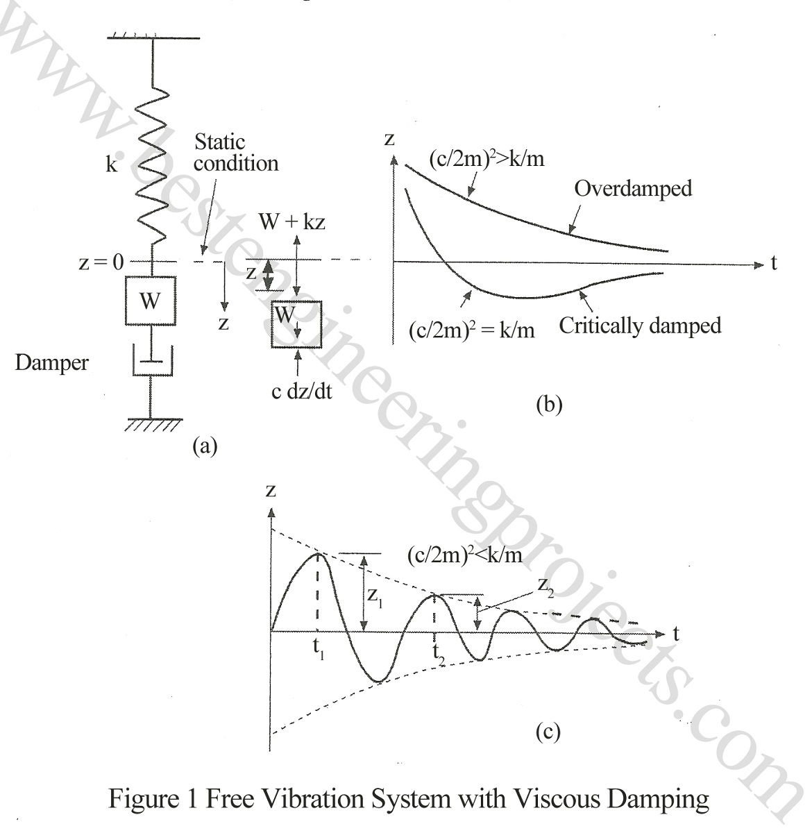 Fig.1 (a) shows the free vibration of a system with damping. A device known as damper is shown in the figure below.