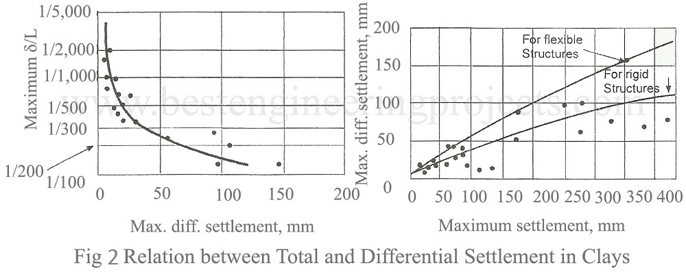 Knowing the nature of structure, a permissible is selected. Using the appropriate curve, the corresponding differential settlement and maximum permissible total settlement is obtained. The actual settlement likely to experience by the subsequent section. This value should be less than the permissible settlement found from the curves presented by Bjerrum.