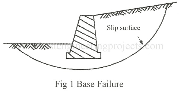If the base of soil consists of medium to soft Clay, a circular slip circle may develop as shown in Fig.2. The critical slip surface must be located by trial. Such stability problems may be analyzed either by method of slices or any other methods such as friction circle method.